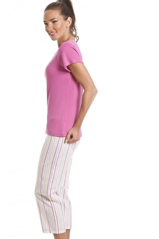- Multi-Coloured Striped Crop Leg Elasticated Waist Bottoms