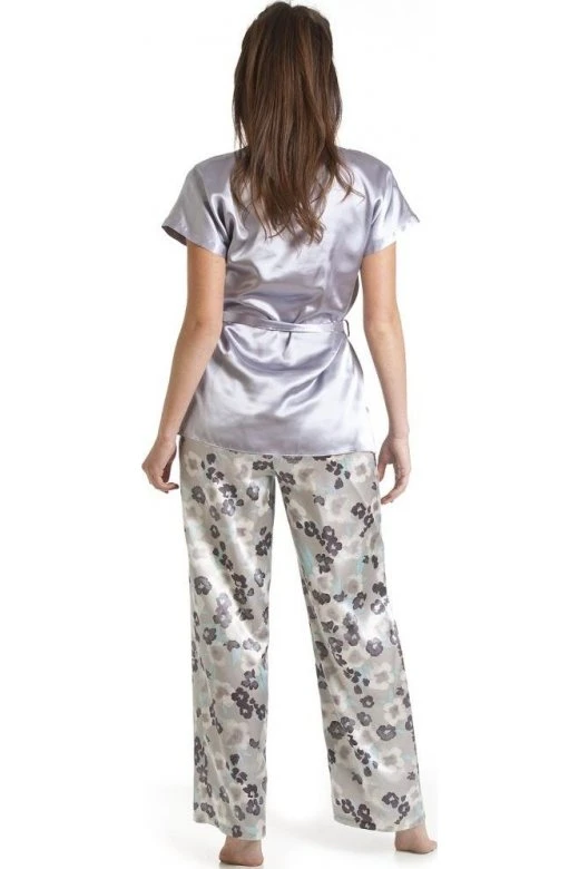- Luxury Full Length Light Grey Satin Pyjama Set