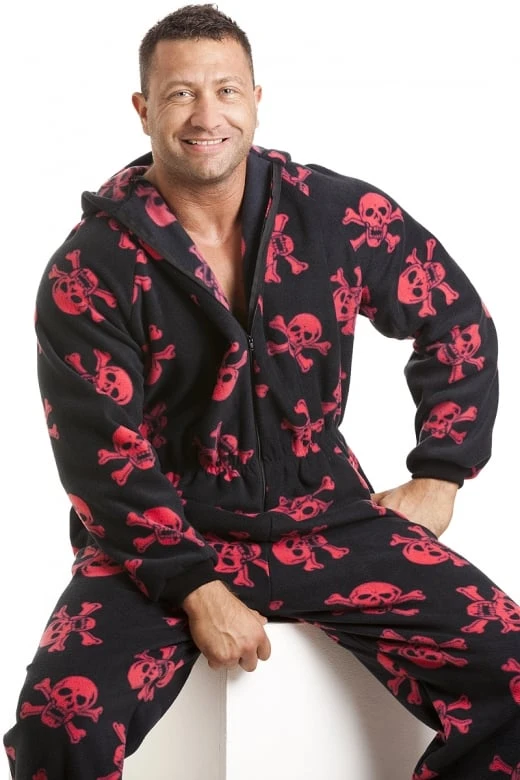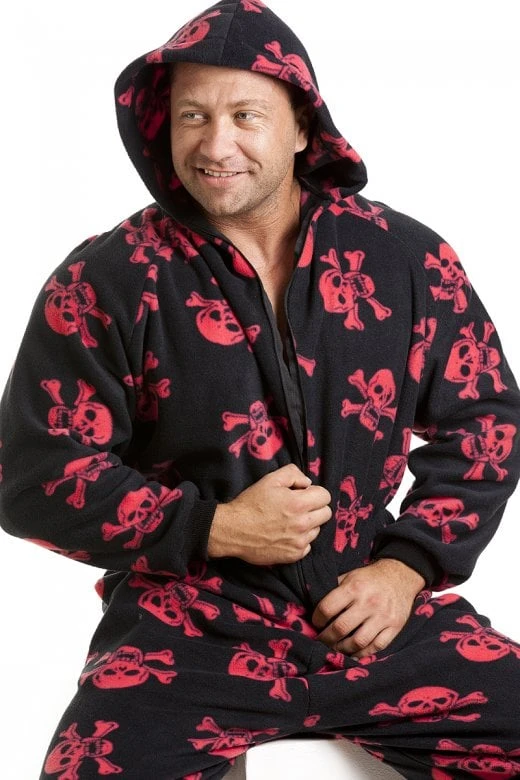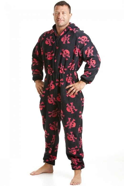 - A Choice Of Red Or White Skull Print Supersoft Stylish Full Length Hooded Onesie