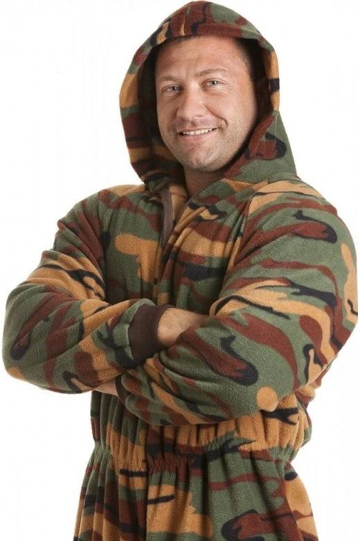 Introducing Our New Range Of Mens All In One Pyjamas. These Mens Onesies Are The Height Of Luxury And Comfort For Bedtime And Evening Wear. This Onesie Features A Green Camouflage Print Which Includes A Hood, It Is Footless And Has A Zip Front. This Perfect Onesie Will Keep You Warm On Cold Winter Nights.