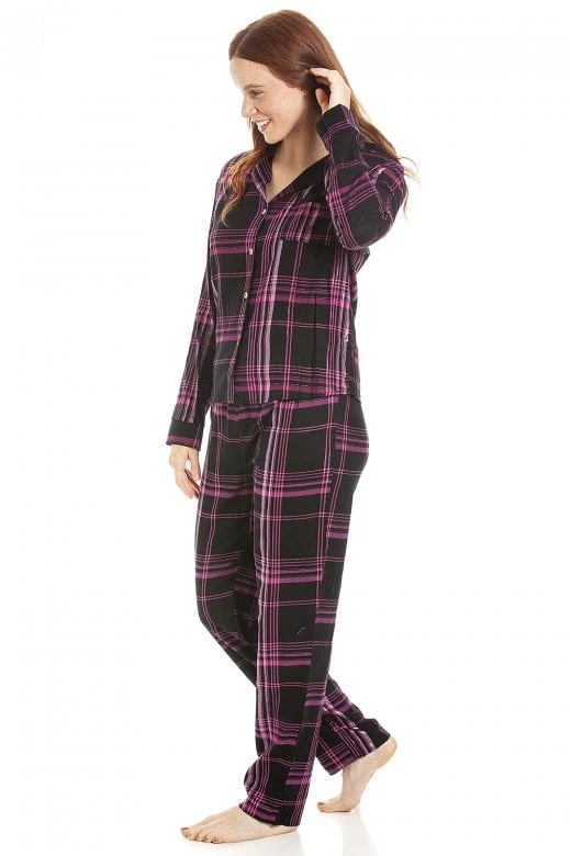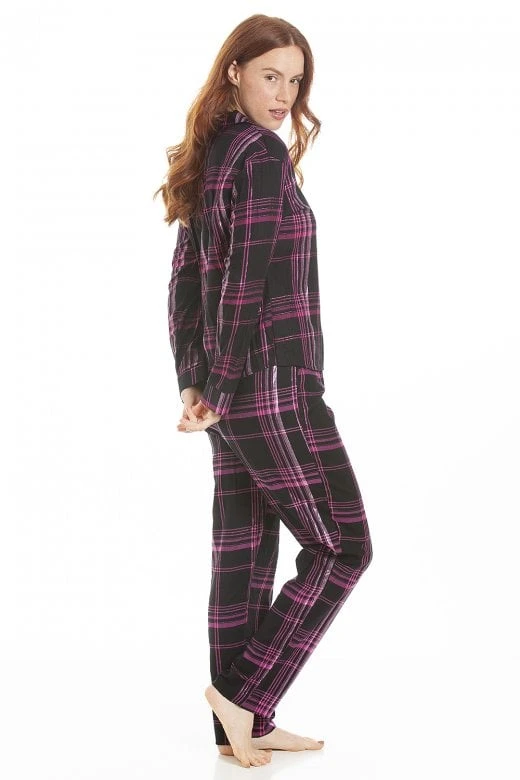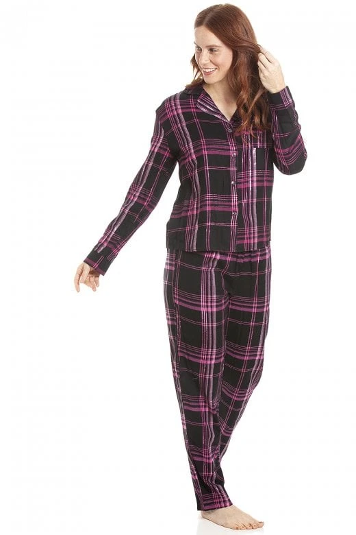 Camille Womens Black & Pink Checkered Flannel Pyjama Set