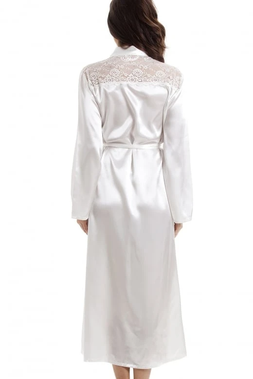This dressing gown by Camille will add the perfect satin nightwear to your loungewear drawer. Made In a super-soft and lightweight satin finish, it features a gorgeous Cream floral lace across the top of the back designed with a self-tie waist to ensure a comfort secure fit.