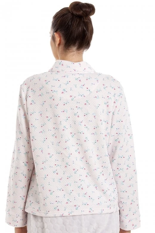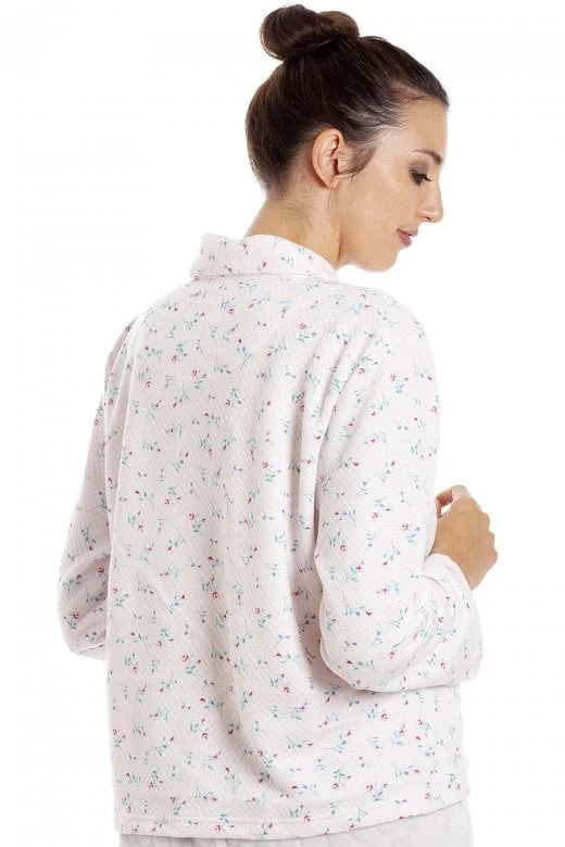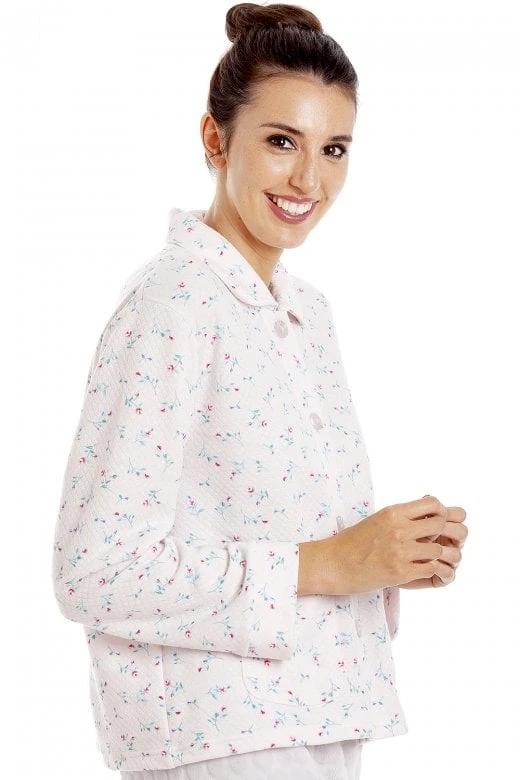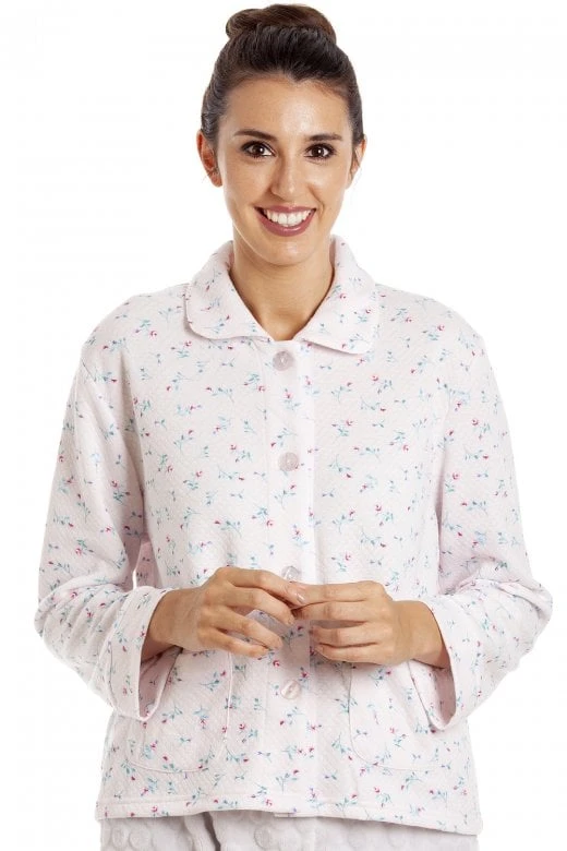 Camille Womens Floral Button Mock Quilt Bed Jacket Pink