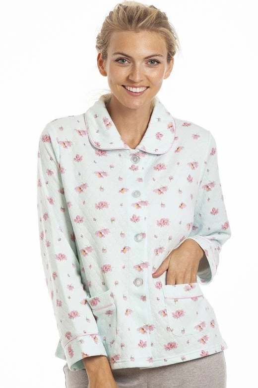 These soft smooth Mock Quilt Bed Jacket are the perfect loungewear accessory, This bed jacket is comfortable fit also featuring a buttoned front and 2 side pouch pockets.