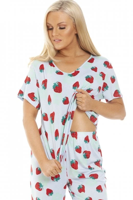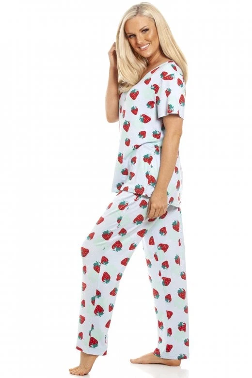 Our new full length floral pyjama set is a great addition to your spring-summer wardrobe. Featuring a stylish floral print in three different colour, short sleeves and an elasticated waist. This set is made from a polyester/spandex blend making this a loose fitting pyjama with added stretch if needed for extra comfort. This Pyjama is machine washable at 30° and washing dark colours separately.