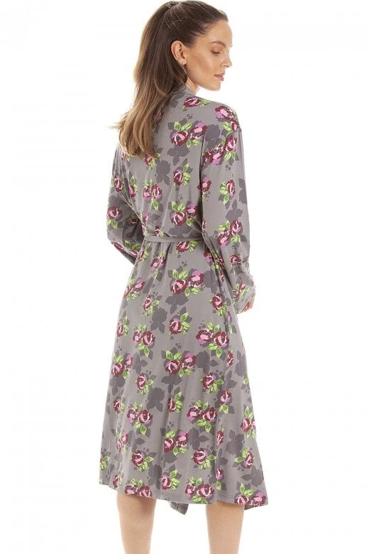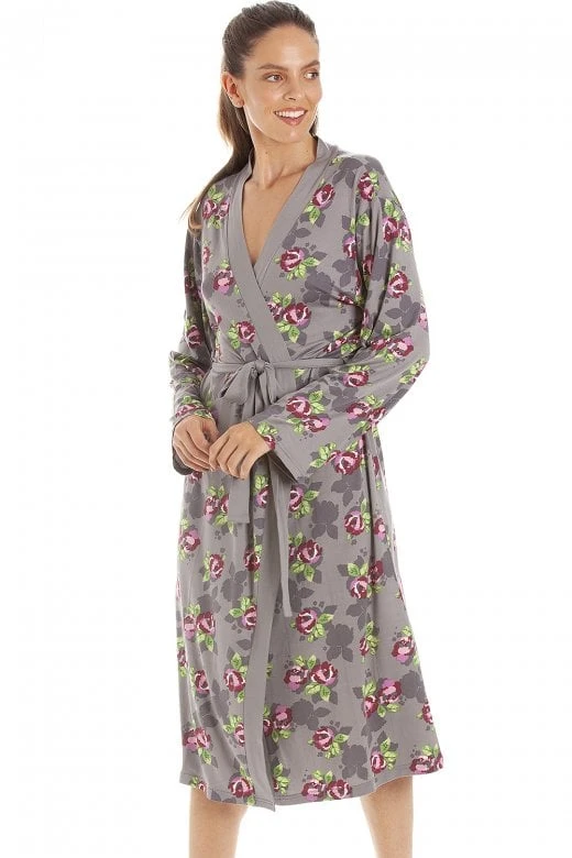 Camille Womens Grey Floral Print Spandex Knee Length Wrap