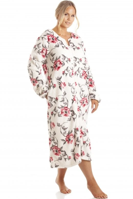 Camille Womens Katie Ivory Floral Zip Robe