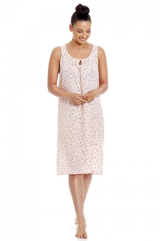 Relax and unwind in this stylish Chiffon print nightdress. The polka dot print design gives it an extra feminine feel.