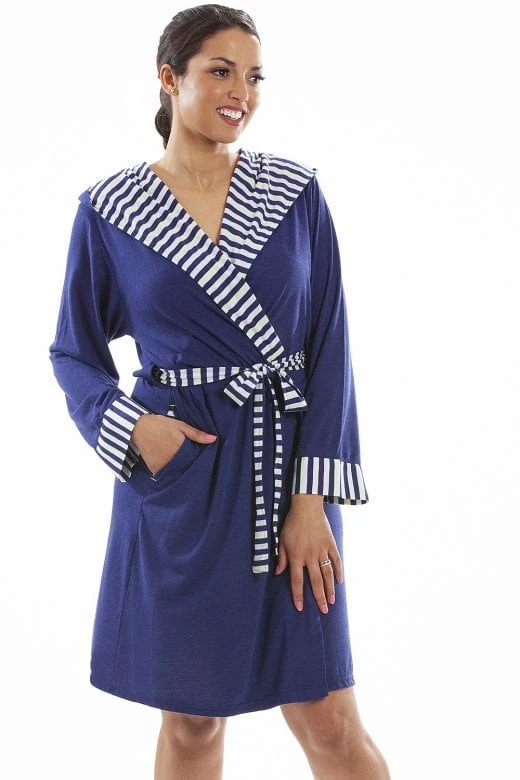 - Dressing gown Is Knee Length with Long Sleeves and a Hood