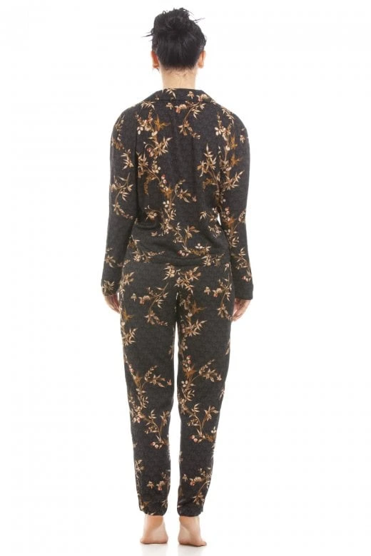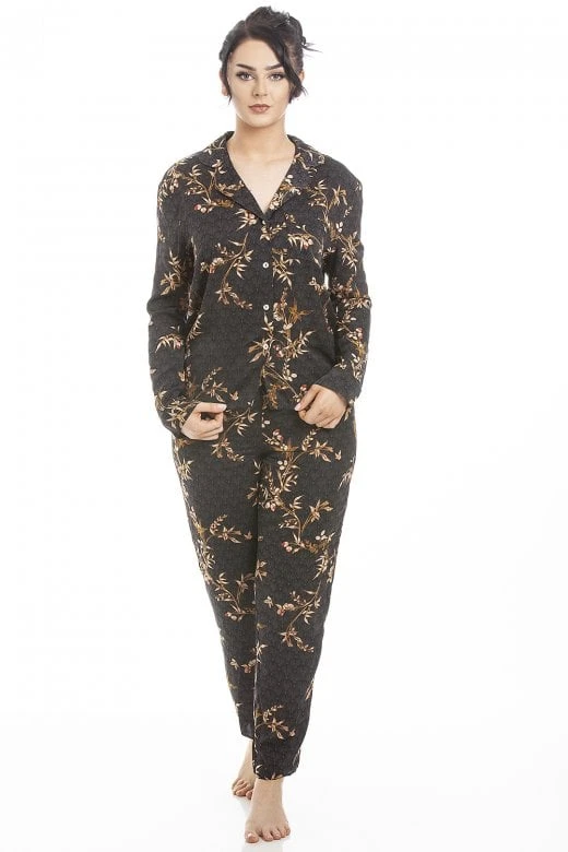 Camille Womens Long Sleeve Floral Satin Pyjama Set Gold