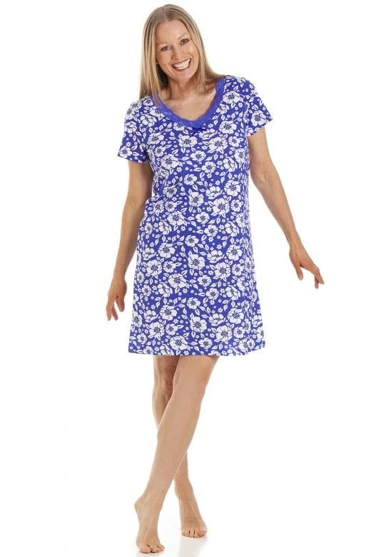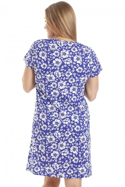 Camille Womens Navy Blue Floral Cotton Nightdress