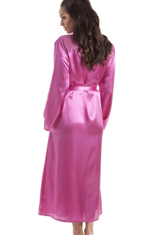 This dressing gown by Camille will add the perfect satin nightwear to your loungewear drawer. Made In a super-soft and lightweight satin finish, it features a gorgeous Pink floral lace across the top of the back designed with a self-tie waist to ensure a comfort secure fit.