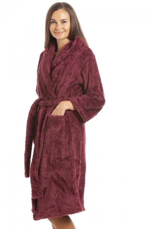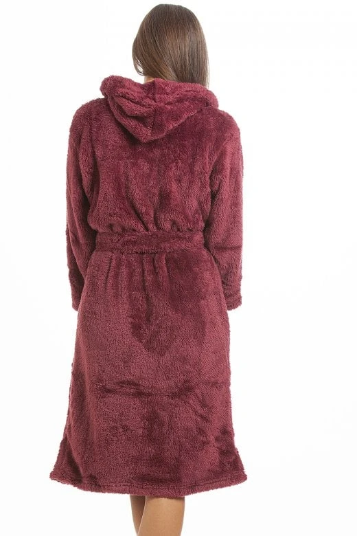 - Super Soft Fluffy Burgundy Long Sleeve Bathrobe
