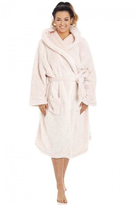 Camille Womens Super Soft Fleece Hooded Robes Pink