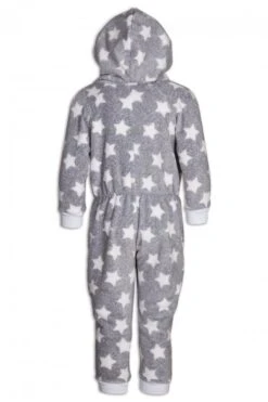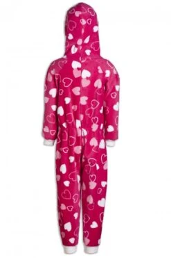 Camille Childrens Pink Heart Print Fleece Hooded All In One Onesie