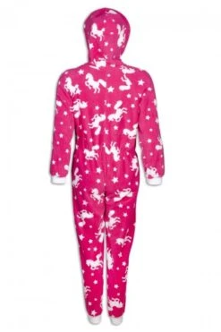Camille Childrens Pink Unicorn Print Fleece All In One Pyjama Onesie