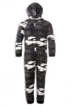Camille Childrens Snow Camouflage Supersoft Fleece Zip Front Hooded Onesie